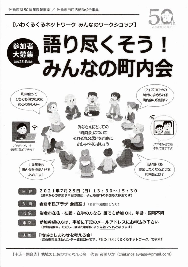 お問い合わせ・お申し込み:地域のしあわせを考える会 後藤(chiikinosiawase@gmail.com)